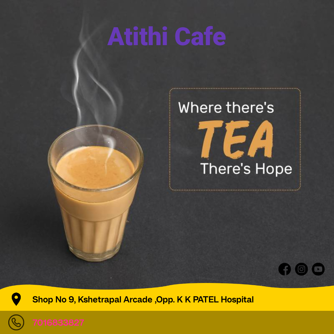 Located conveniently at Shop No 9, below Khsetrapal Arcade, opposite K.K. PATEL HOSPITAL in Ganshyam Nagar, Bhuj, Atithi Cafe is a charming little haven for food lovers that promises delightful culinary experiences in a warm and inviting setting. This cozy cafe is perfect for quick bites, casual hangouts, or satisfying cravings after a long day.